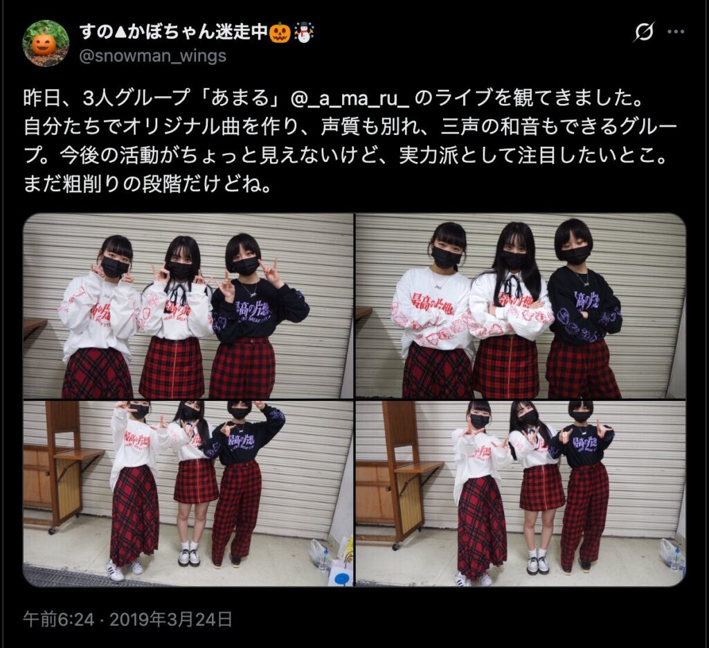 映像こそありませんが、ファンが撮影したライブ中の写真や、メンバーとの集合写真はSNS上に複数残っており、当時の「るり」さんの姿を確認することができます。