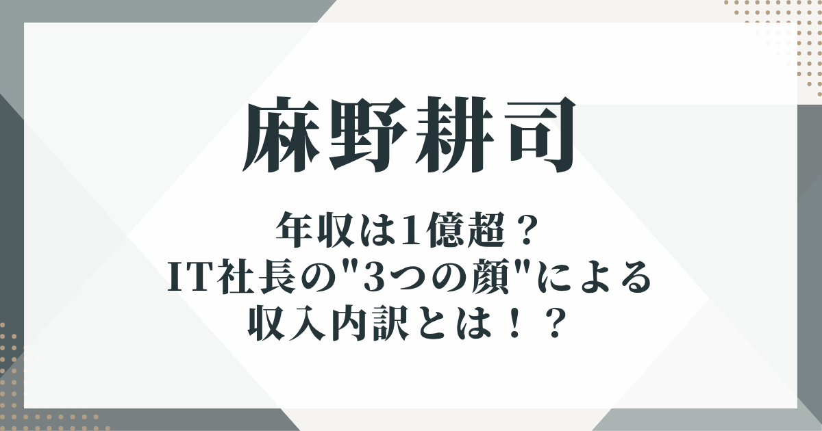 今回はそんな麻野耕司さんの年収や総資産について、公開情報をもとに調査しました。